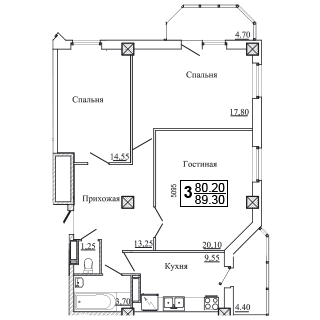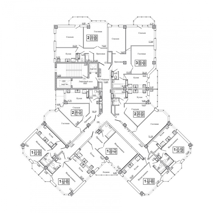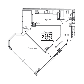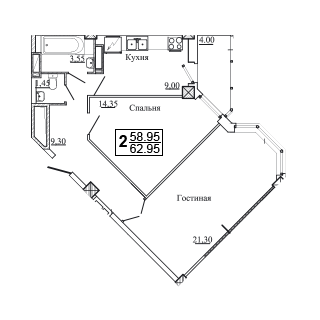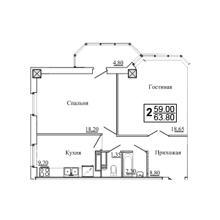 2к 62,75 кв. м – 63,8 кв. м – от 2 392 100р.