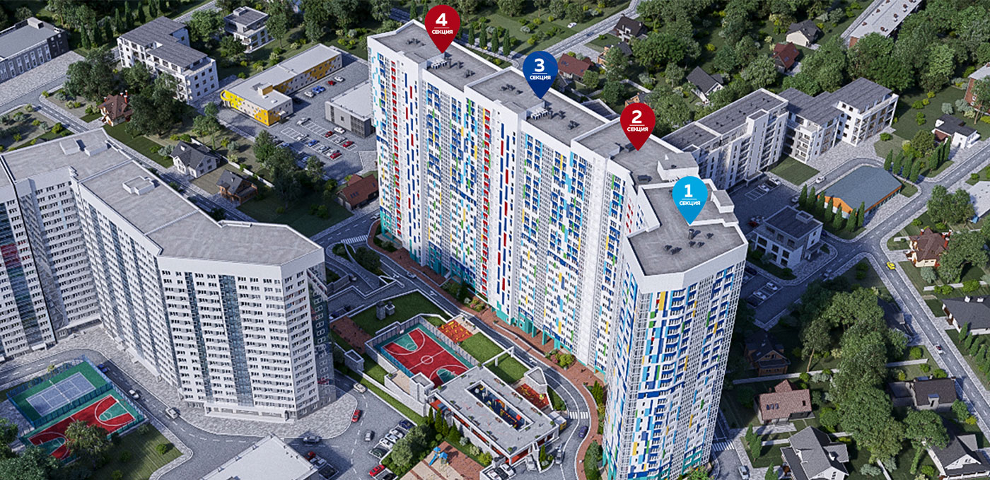 В 25-этажных постройках, разделенных на 2 этапа строительства (очереди), запроектировано 923 квартиры: