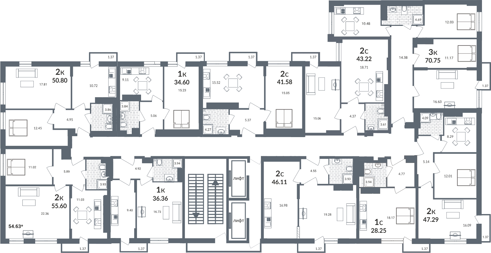 - 1-комнатные квартиры площадью от 34 кв.м от 2 397 000 р.