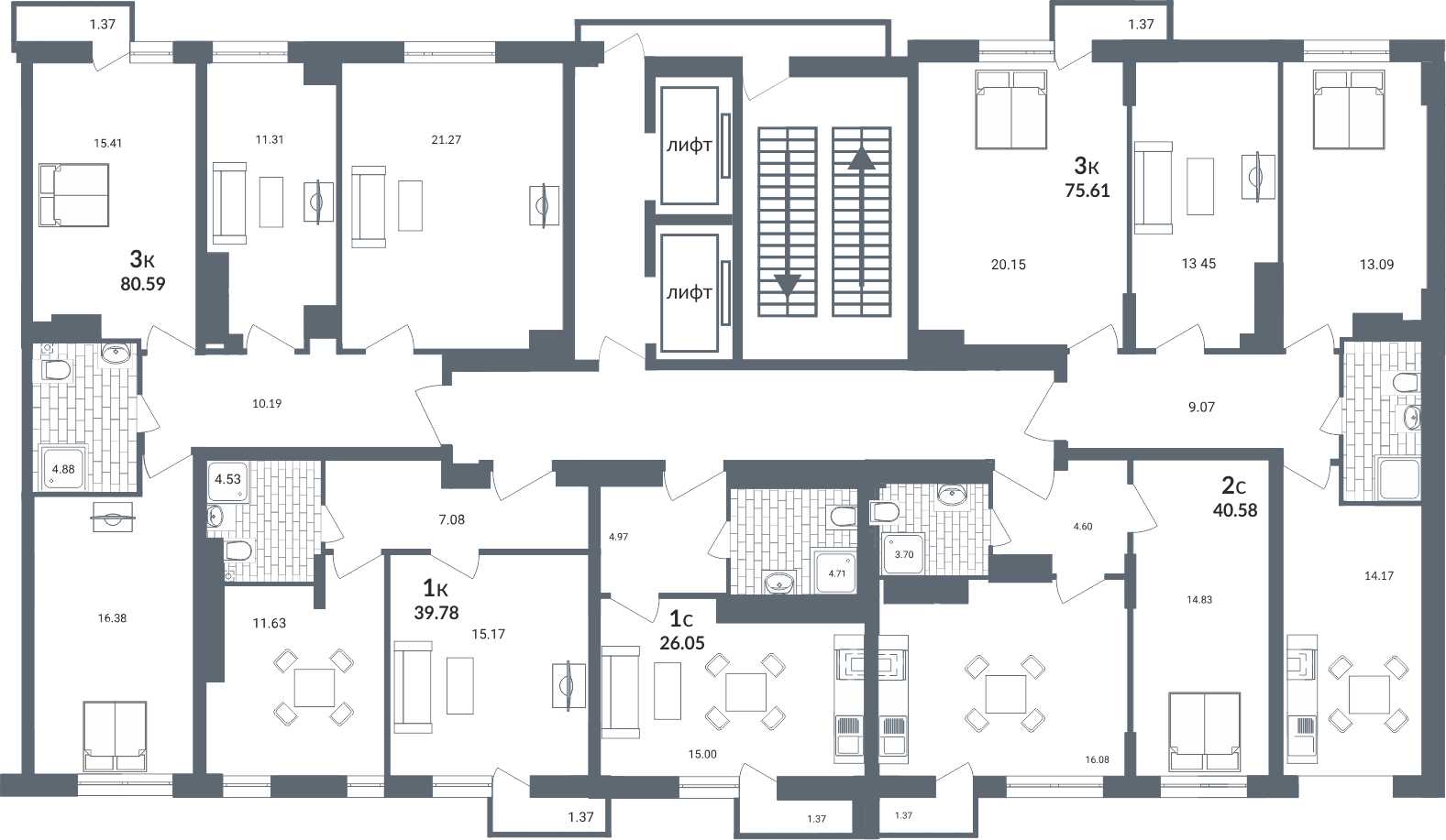 - 3-комнатные квартиры площадью 70-81 кв.м. от 3 815 000 р.