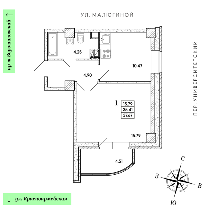 1к квартиры от 39,52 кв.м. - от 2 247 600 р.