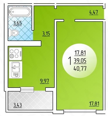 - Общая площадь: 43 м²