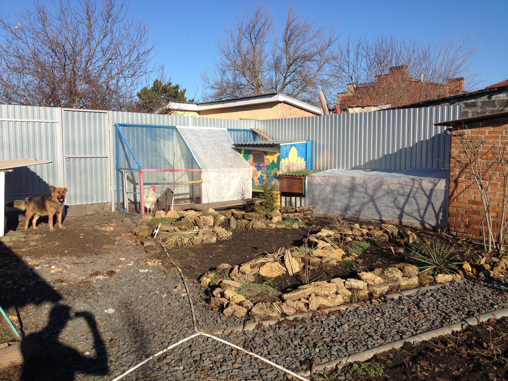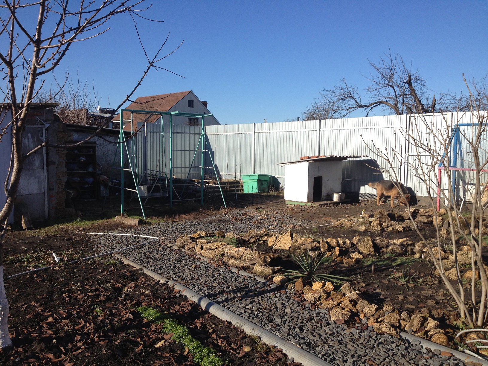 На участке плодово-фруктовые деревья, качели, хоз. постройки (сарай, курятник).