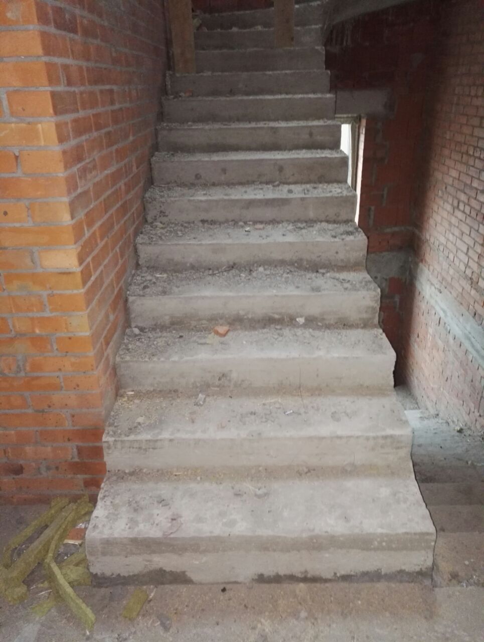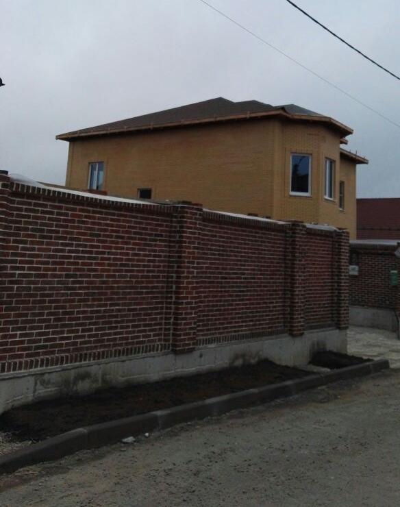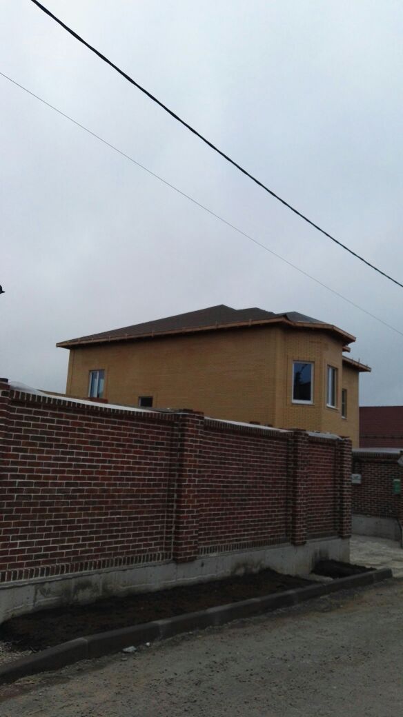 Стены: Липецкий кирпич + 380 мм керамоблок, внутренние стены из кирпича. Высота потолка 3,5 м. На третьем этаже (мансарда) заведена бетонная лестница.