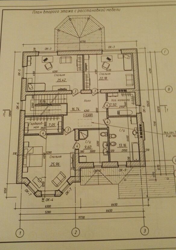 Площадь 2 этажа: 127 кв. м (4 спальни 26/25,42/22 и 14 кв. м), с/у холл, хоз комната.
