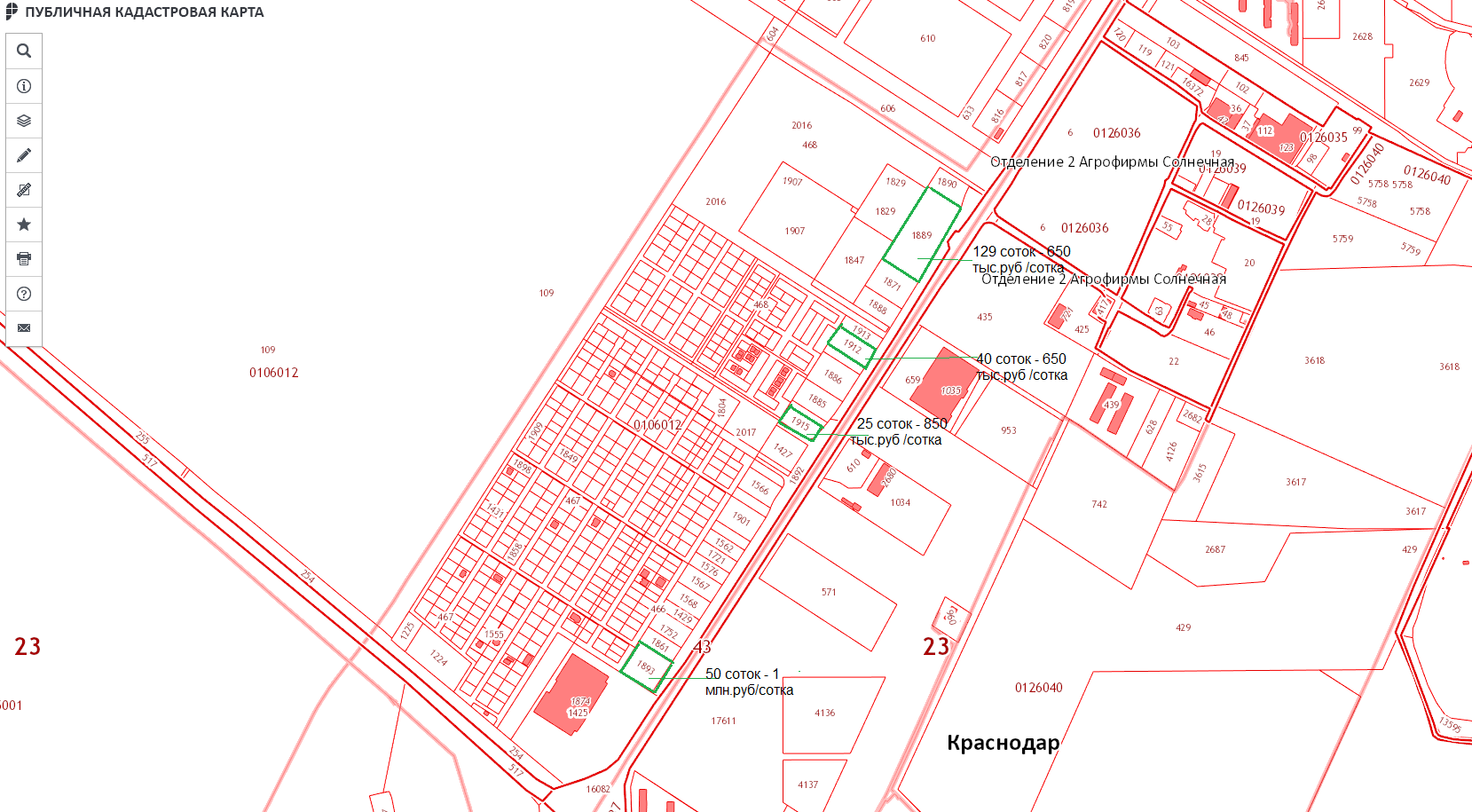 Площадь 25 соток – цена 30 000 000 руб.,  два фасада один выходит на парковку Ленты, второй на западный обход, глубина участка фасад на Ленту - 78 м, фасад  на Западный обход - 32м, есть возможность объединения с участком №2 и увеличением площади до 50 соток.