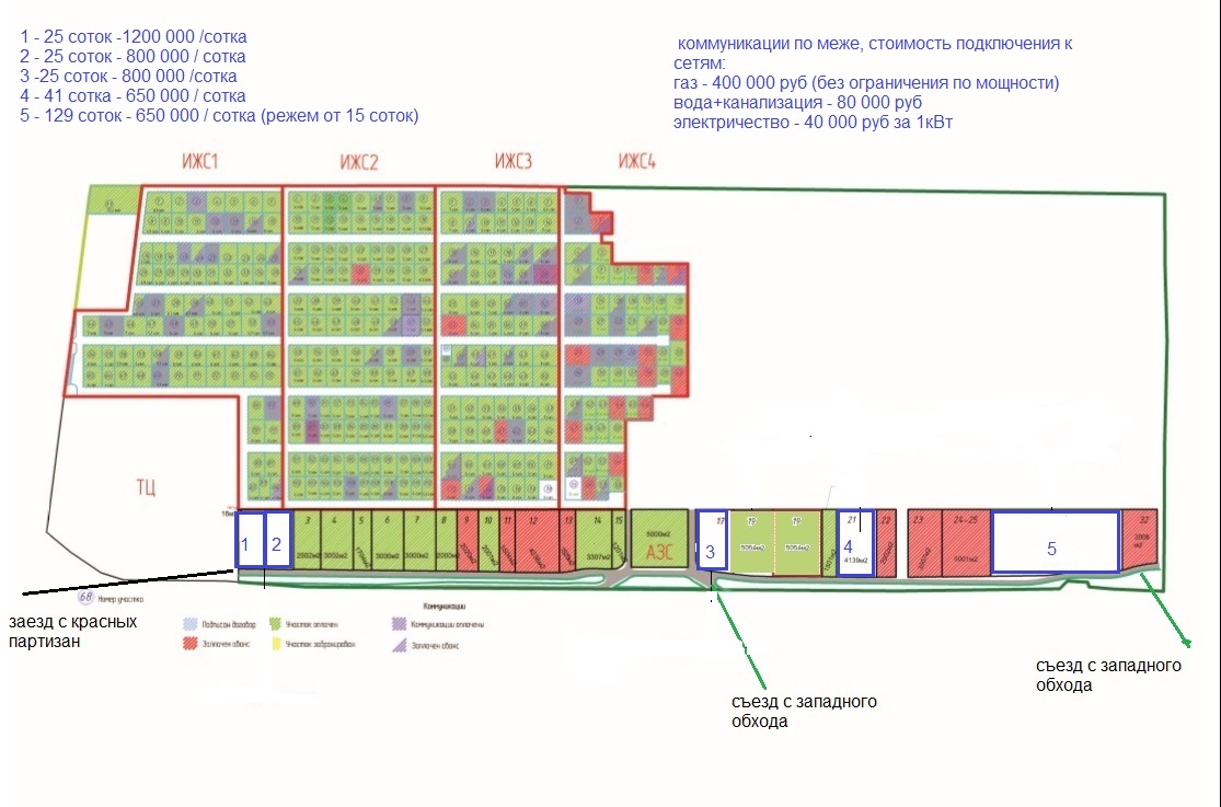 Все участки расположены на 1-ой линии ул. Западный обход, и обеспечены подъездными путями (параллельная асфальтированная дорога вдоль Западного обхода), являются часть Бизнес-парка «Близкий», клиентский потенциал обеспечен жителями микрорайона в перспективе 14 тысяч человек, а так же якорными игроками бизнес-парка ТЦ «Лента» и АЗС «Лукойл», автомобильный трафик по ул. Западный обход составляет  от 15 до 40 тыс.авто в сутки.